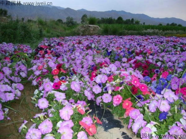 矮牵牛是花海建植中的非常重要的构成种类,它色调很多花开的时间长开的花朵,观看价值高。矮牵牛并称朝颜、碗公花、牵牛花、喇叭花等,归属于1年生草本花草,花直径4~6cm,株体总高度38~85公分,花开的时间30~50日,各地区开花时间略有差异。矮牵牛出苗率高,种植地带广阔,是观光景区,是建植花海的优选种类,在我国种植地方多,田野中也经常见到,中颖园林常年销售矮牵牛种子,量大更提供上门播种指导,欢迎新老客户实地看货考察。
