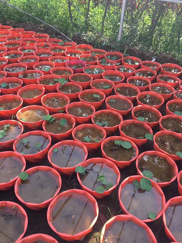 荷花小苗的管理简单,定期向水中投放牛粪猪粪等,保持水在一个富肥力的状态,但要注意适量,不可以贪多。也可以在水中养殖鱼虾之类的水产品,但一定要投放充足的饲料,否则鱼虾之类的会啃食荷花茎叶子根块等。